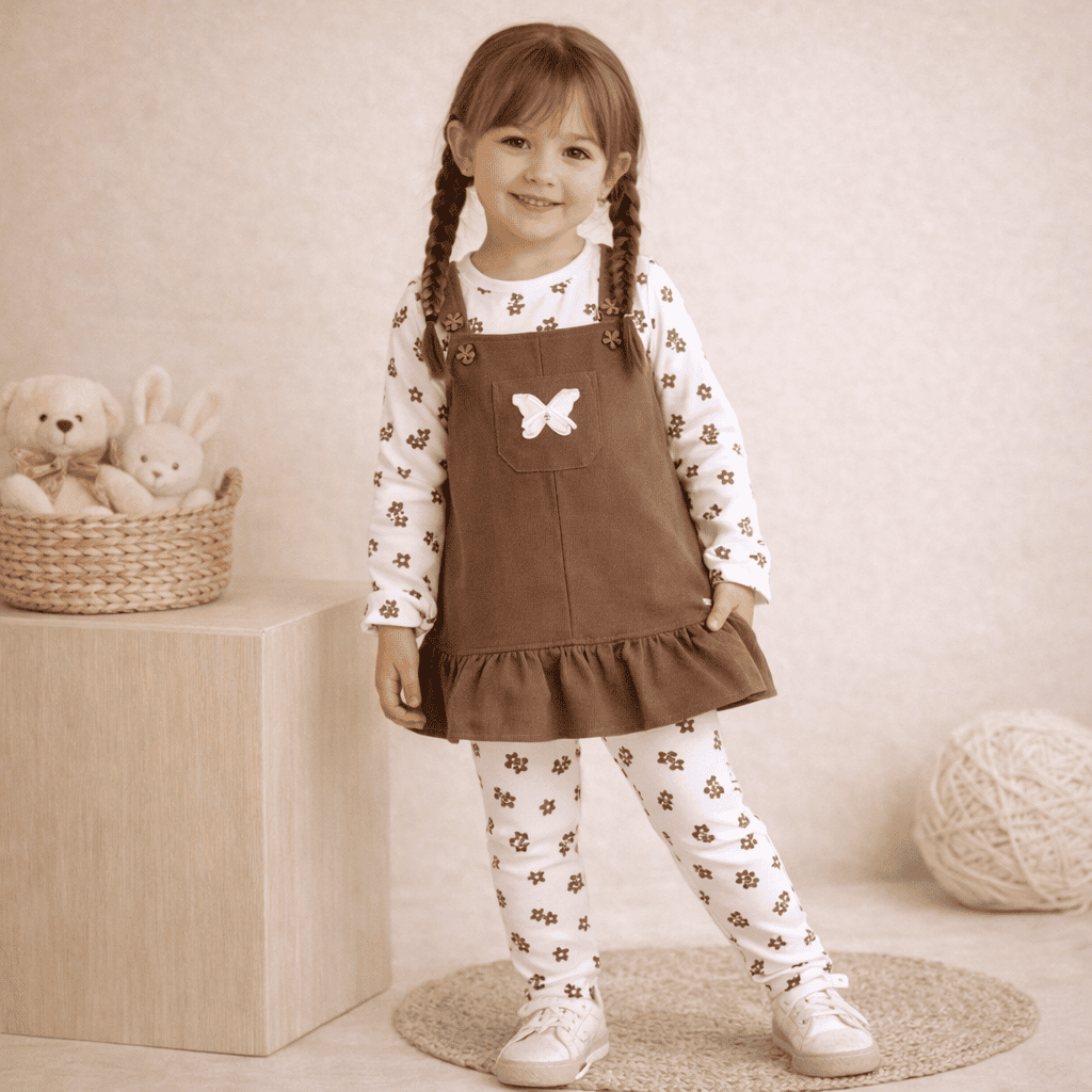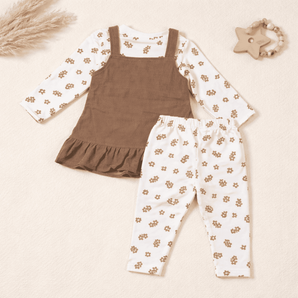 | Color | Pinafore: Brown Top & Legging: White with Brown Floral Print |