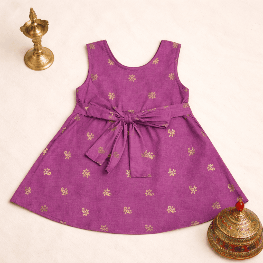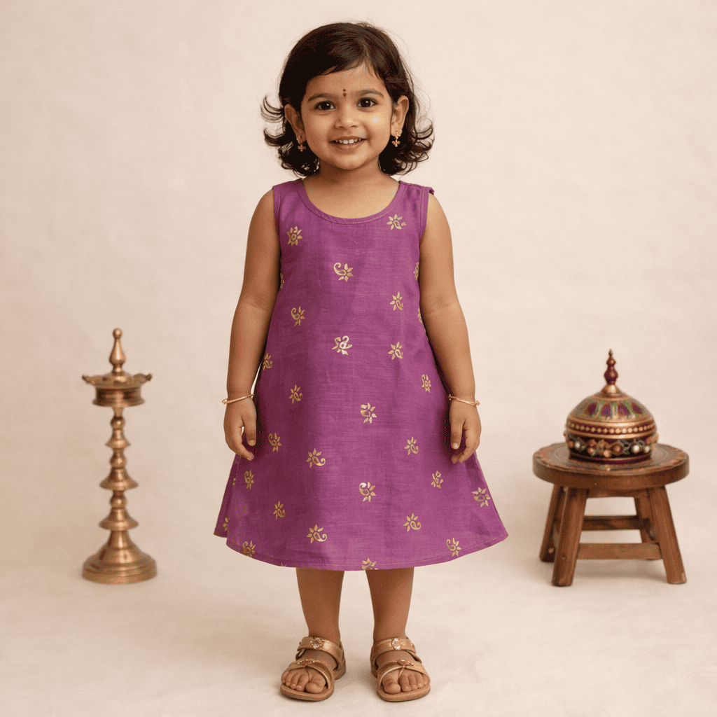 | Design: | A-line silhouette with all-over ethnic gold print |