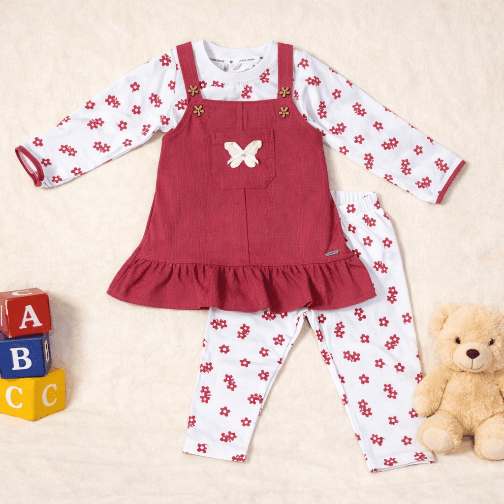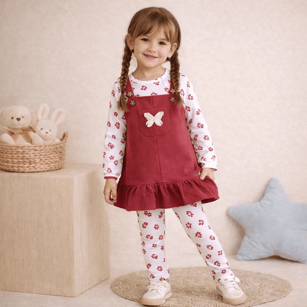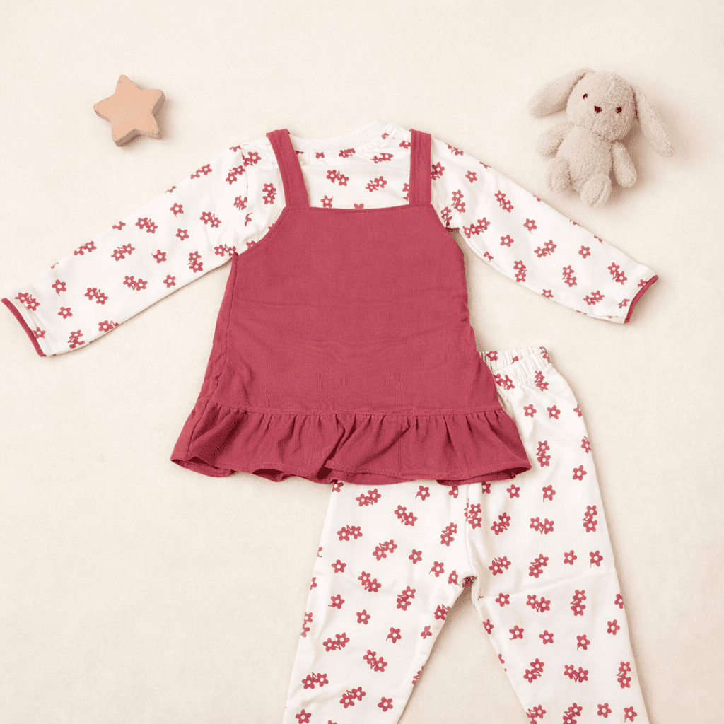 | Color | Pinafore: Maroon Top & Leggings: White with Red Floral Print |