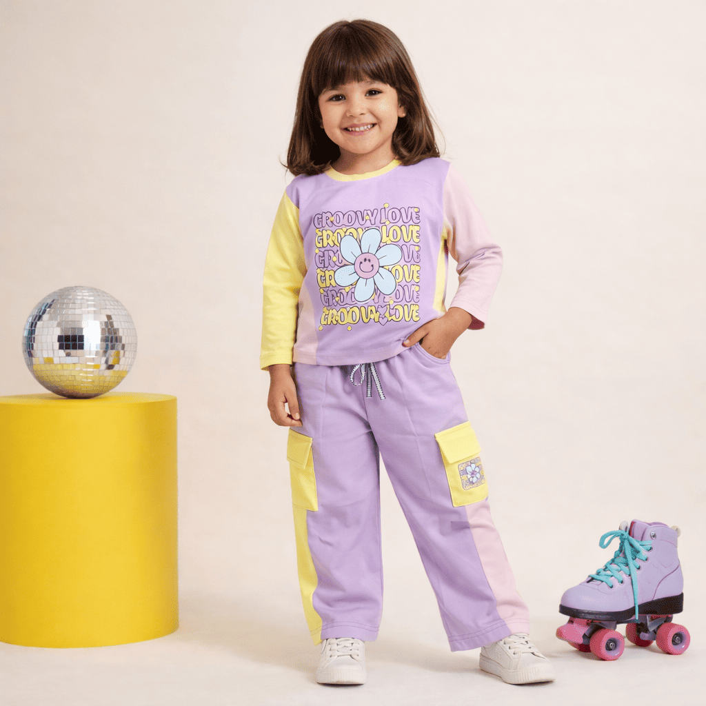 Let your little one spread cheerful vibes in this adorable Groovy Pastel Sweatshirt & Jogger Set. Designed with playful flower graphics and trendy color-block details, this outfit is perfect for comfort and style. The jogger pants come with cute pockets for a sporty look—making it a fun pick for everyday wear, outings, and playtime!