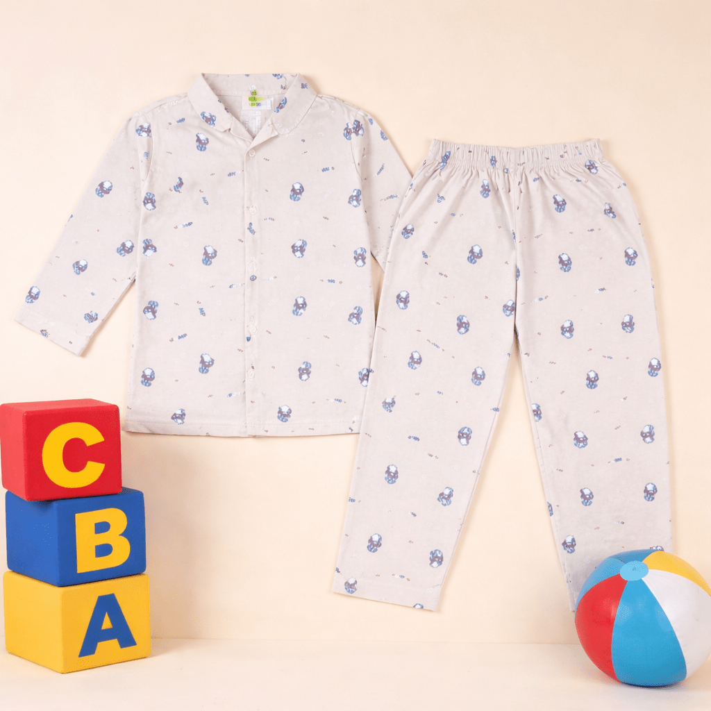 Kids White Printed Cotton Night Suit