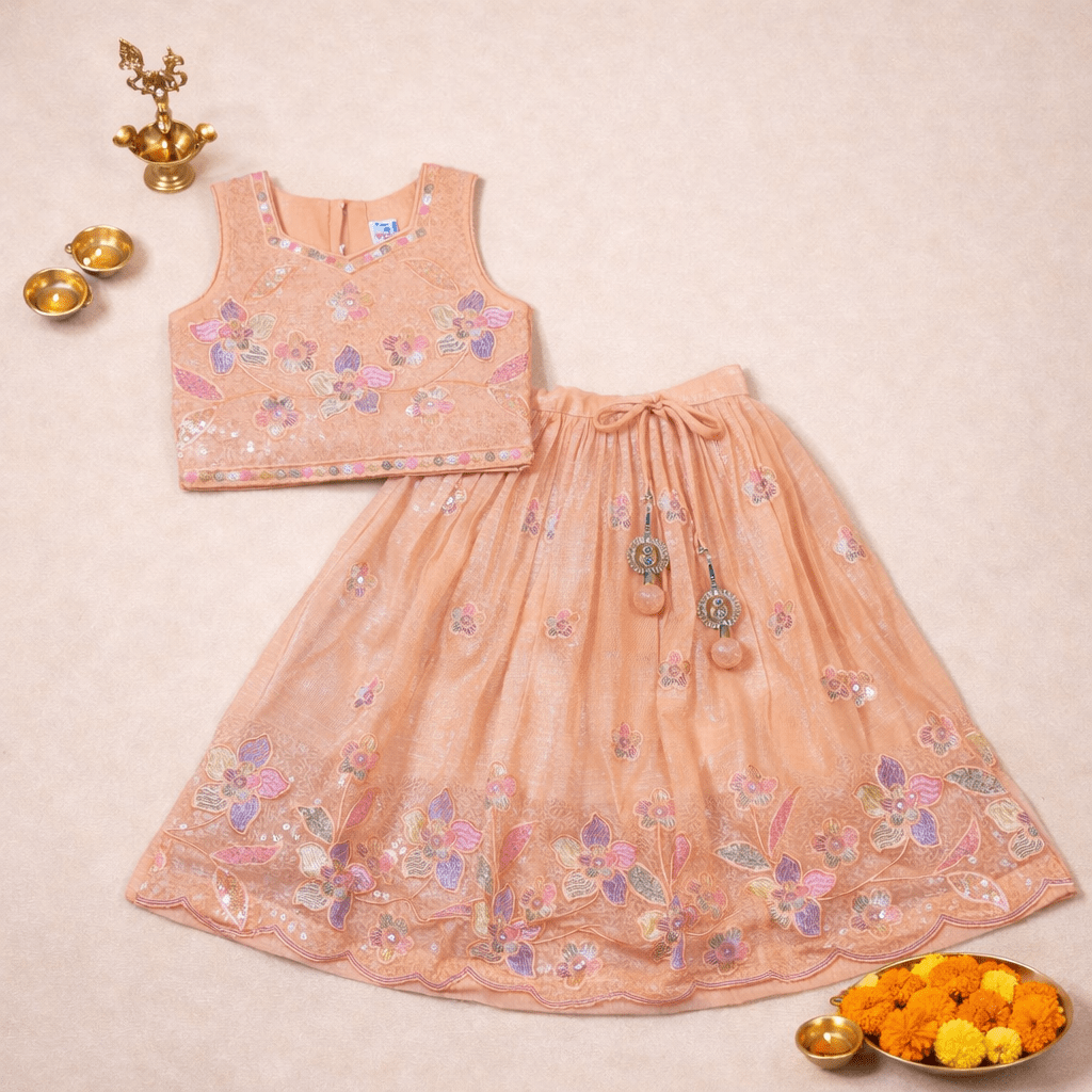 Peach Floral Embroidered Lehenga Set