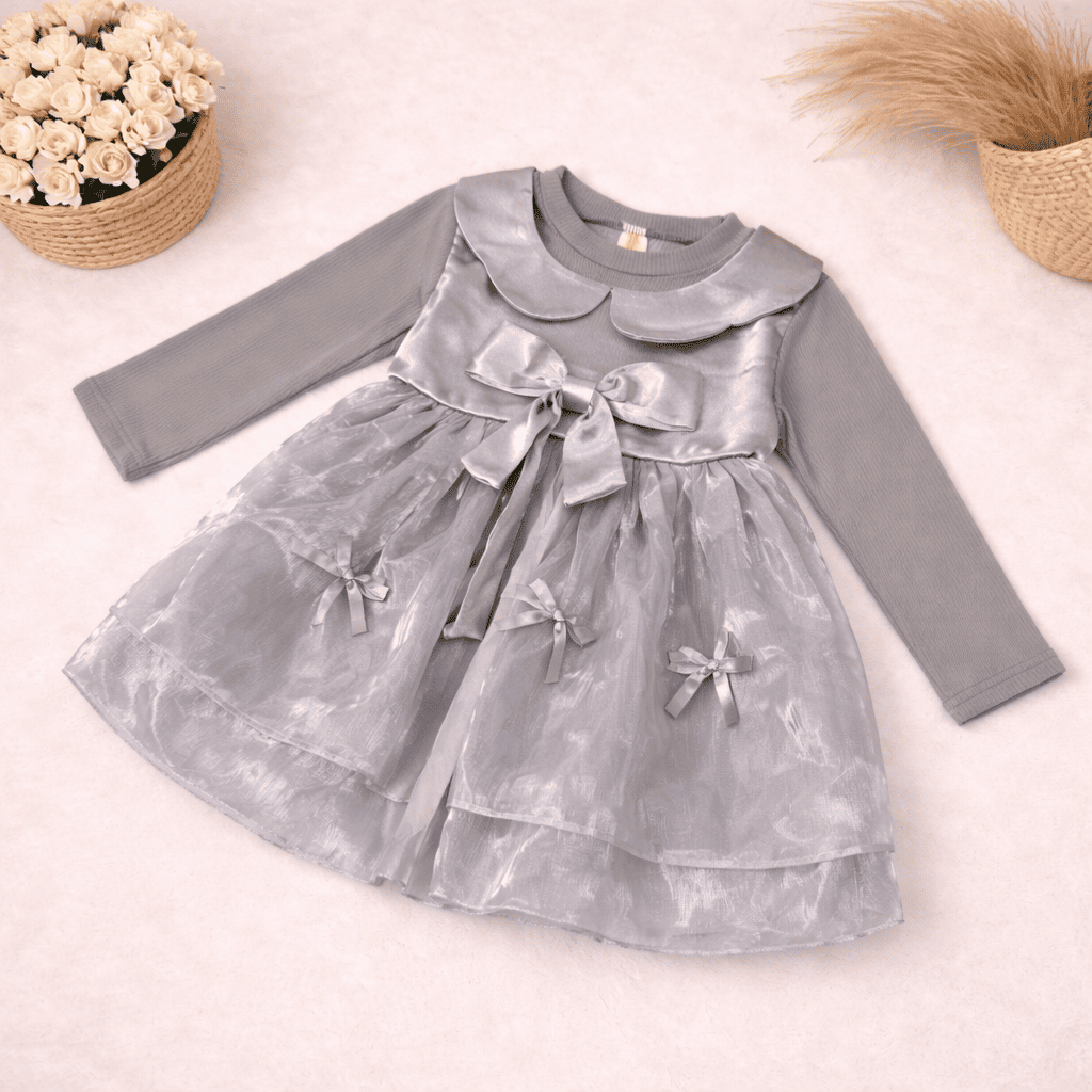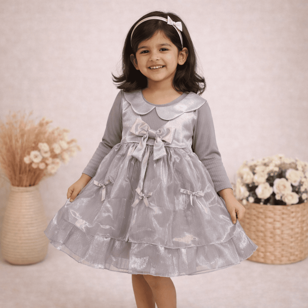 Elegant Korean-style party dress with shimmer organza skirt and satin bow detailing. Soft cotton sleeves ensure comfort, perfect for birthdays, parties & festive wear. Shop with confidence and convenience, as our online store ensures a seamless shopping experience with secure transactions and prompt delivery to your doorstep.