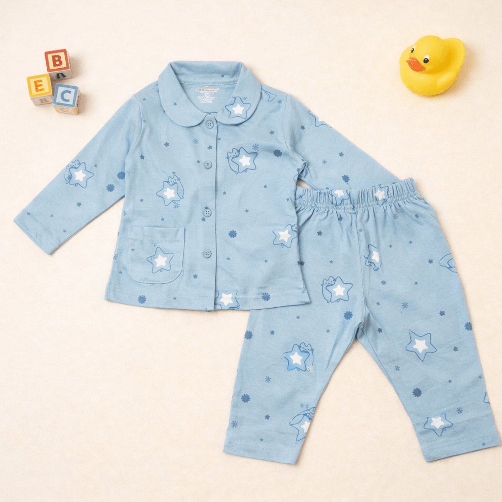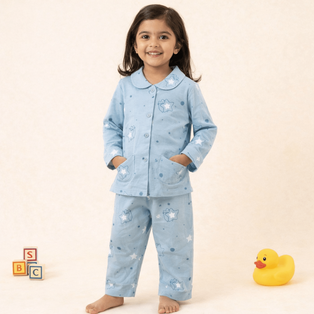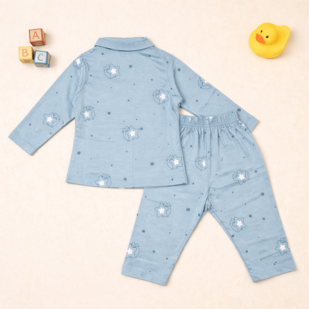 Sky Blue Printed Cotton Pajama Set